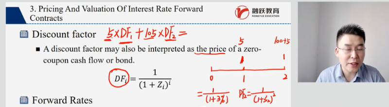同学你好,此处折现因子的意思是,零息债券因为只有期末最后一期收回面值,所以折现到0时点时所用的折现因子=1/[(1+r)^n]