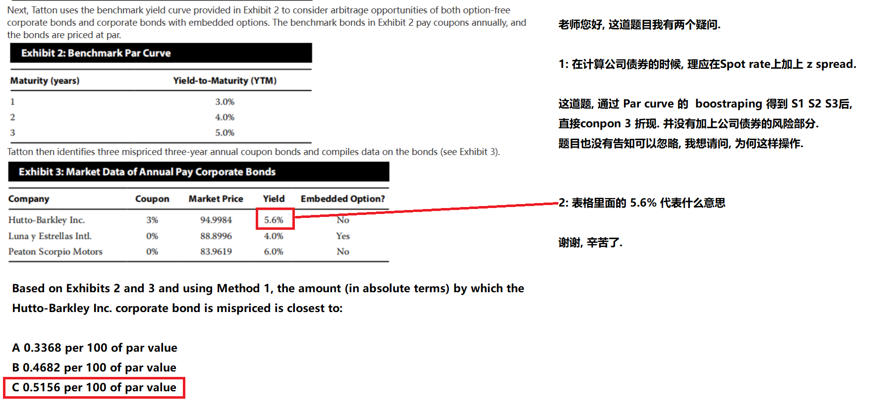 是的,按照正常估值的逻辑应该加上Z-spread,但是在有些题目中为了简便就忽略了Z-spread,可以认为这些公司债的评级比较高。5.6%代表的是公司债的到期收益率。