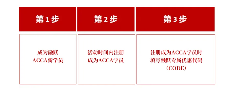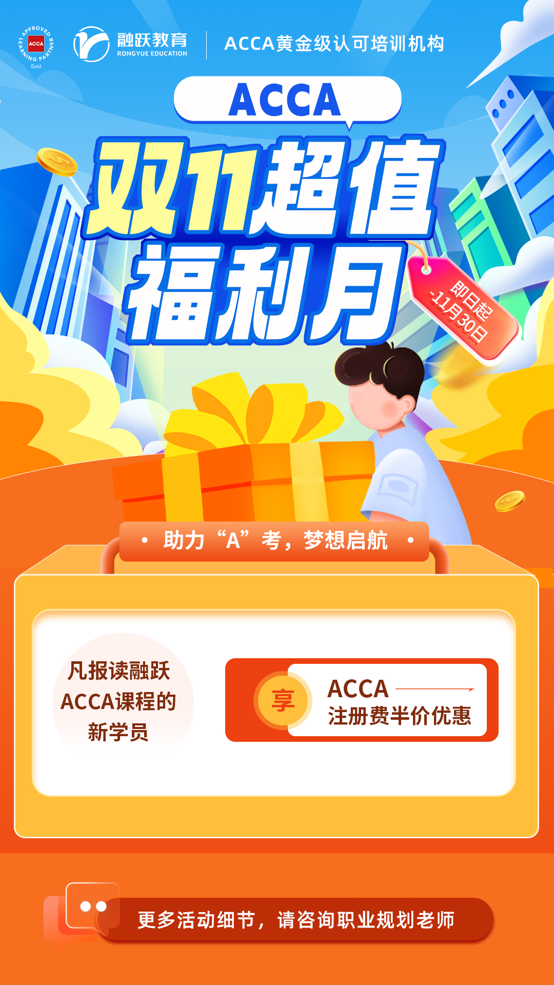 融跃教育学员限时注册福利,在活动期间内成为融跃教育ACCA学员并完成ACCA ID注册,即可享受半价注册优惠。