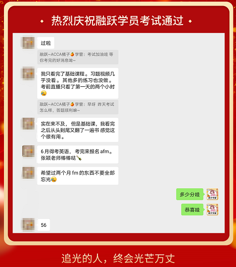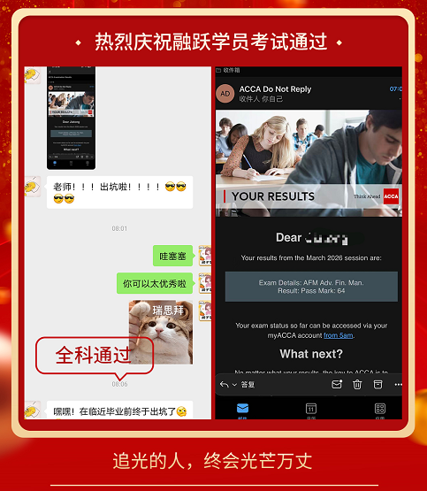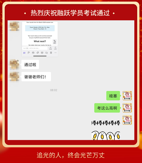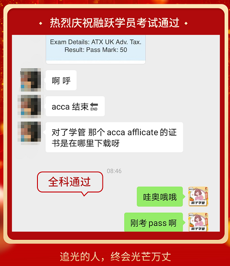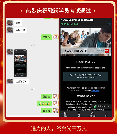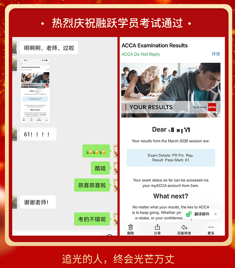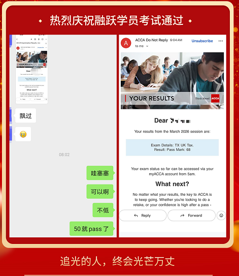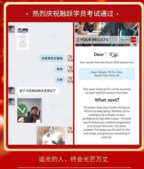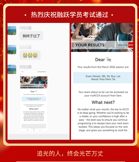 ACCA考试成绩终于公布啦,融跃教育ACCA学员喜报频传,看到大家一个一个的PASS。真心为各位ACCA学员感到高兴,那些熬夜刷过的题,看过的课终于都有了回报。下面我们一起沾沾喜气吧~