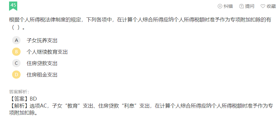 题目里的表述不对,应该是:子女教育支出、住房贷款利息支出