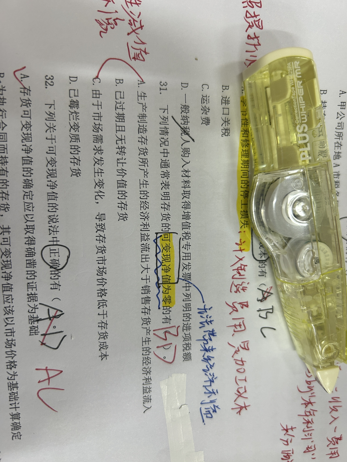 存货的可变现价值为0,说明存货在市面上能够带来的价值为0,已经卖不出去了。A和C选项还能带来经济流入,并不为0,B和D选项对应的可变现净值为0