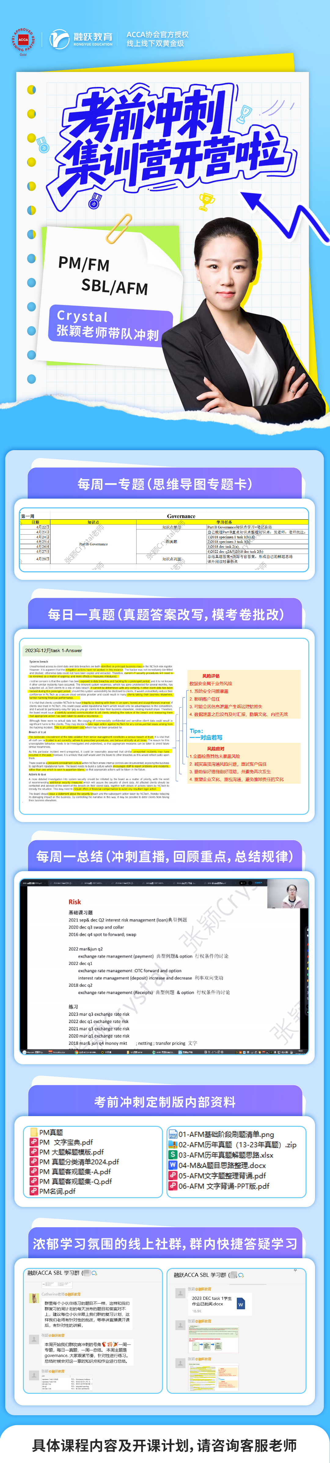 课程亮点:全程在线直播,重点、难点、真题一一讲解;使用全新智能学习平台,让学习变得更简单;浓郁学习氛围的线上社群,群内快捷答疑学习;统一每日刷题任务,监督学习一刻不松懈;明星讲师授课,Crystal张老师带队冲刺。