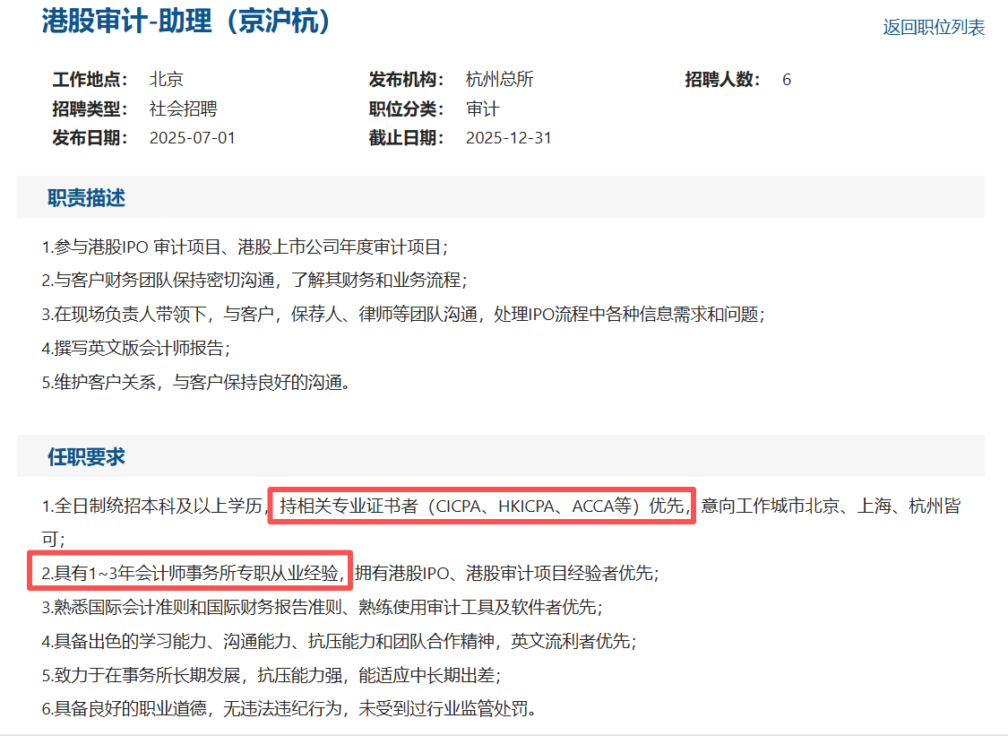 想进会计师事务所?我们只需要看知名事务所的招聘就可以知道条件是哪些!因为他们的招聘要求早把职场密码说透了——经验+高含金量证书,才是应届生突围的关键!