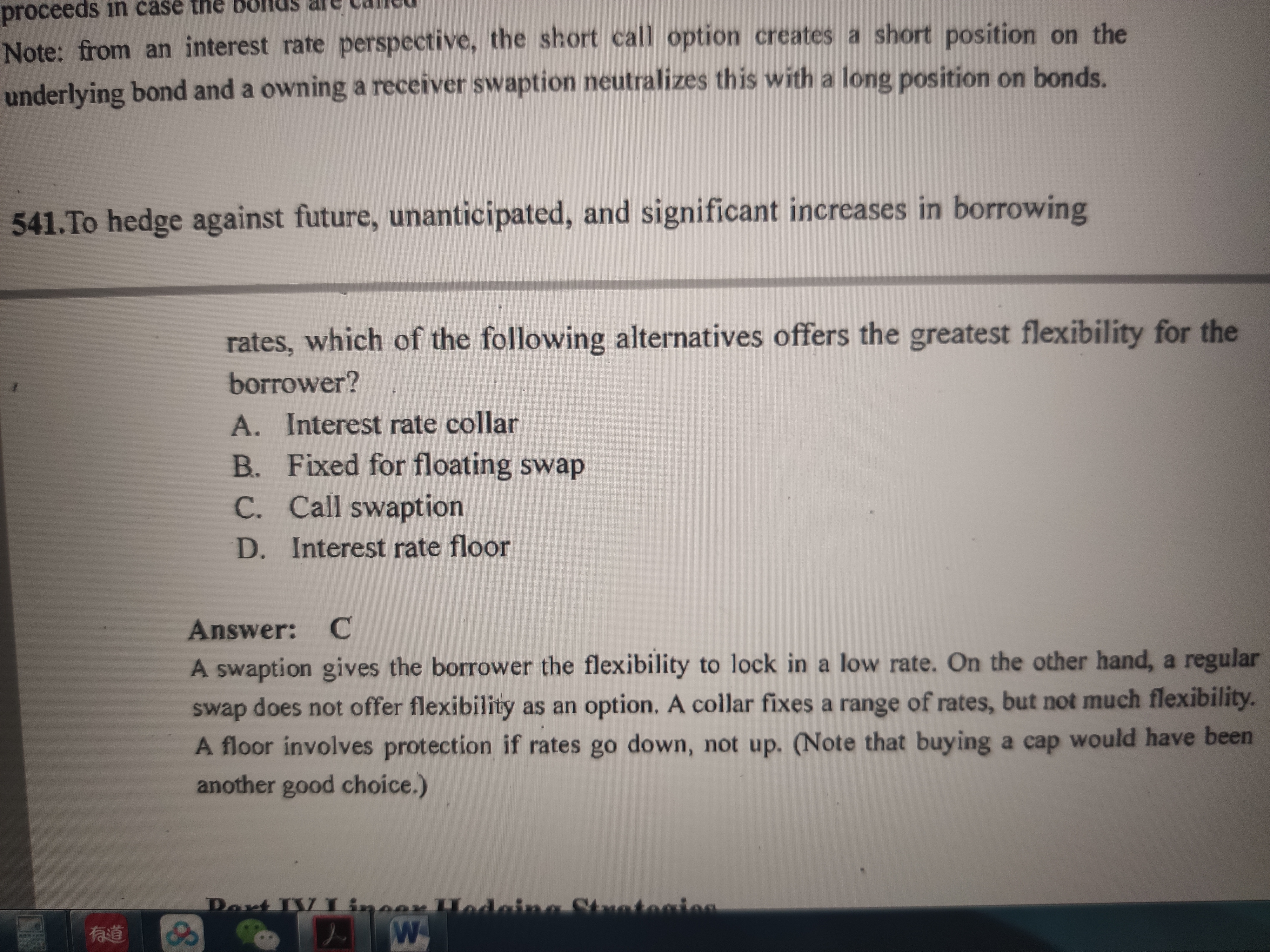 同学你好,call swaption 并没有说一定要支付浮动的,也可能是支付固定的。