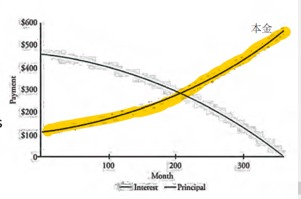 对的同学,开始的本金付的多,然后随着时间后移,每笔payment里面含有的interest 下降,principal 增加