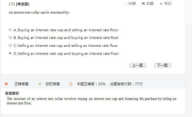 同学你好,collar=stock+short call(sell cap)+long put(buy floor),这道题答案错了。