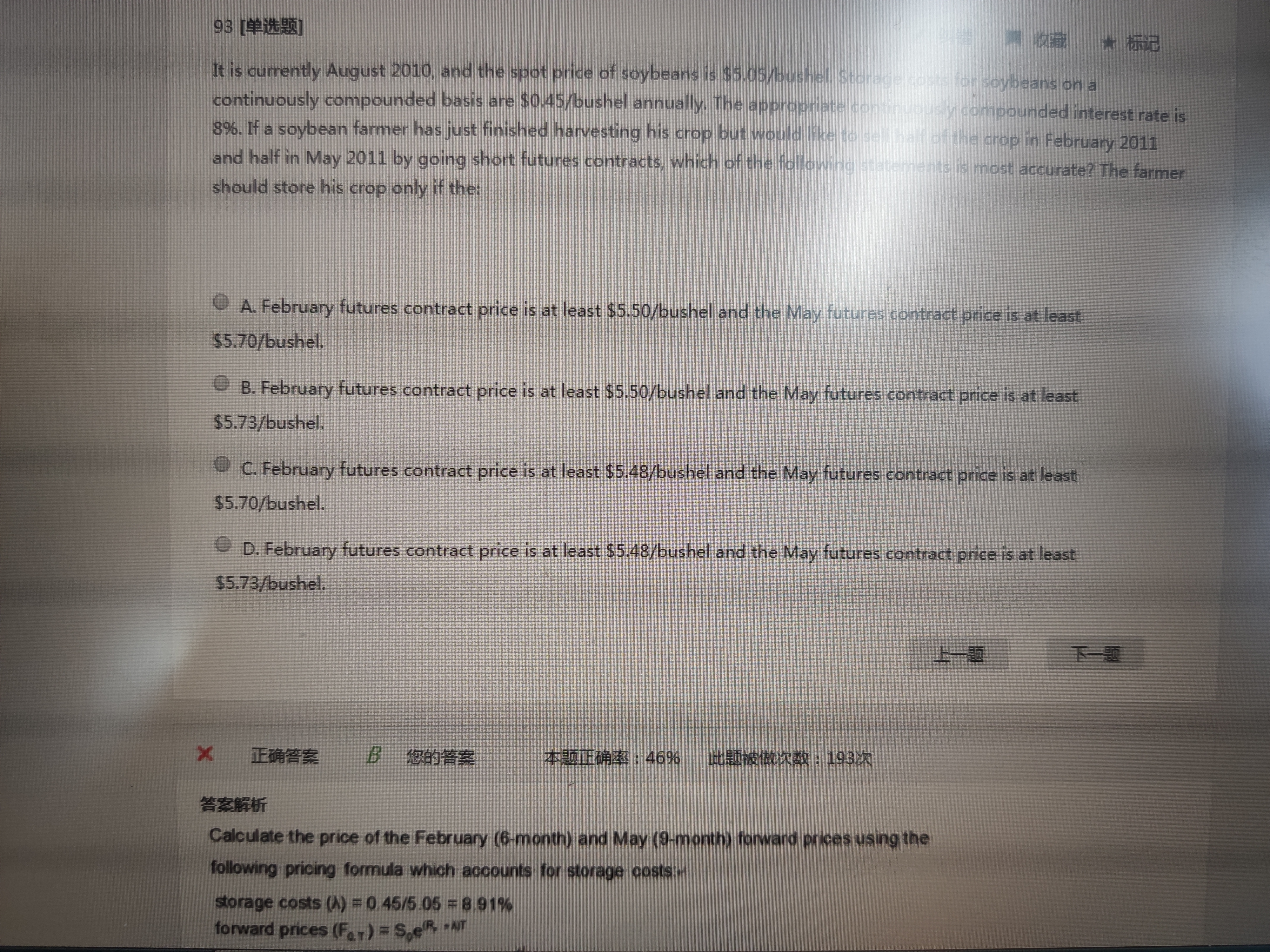 同学你好,折算成比例的前提条件是时间单位要一致,比如都是每个月或每年的,此种情况题干中一般都会直接说明的(比如存储费用率是多少),折算成比例的话是要在指数上进行加减的,而直接折现则是时间单位不一致,只能在现货价格上进行加减,而且是现值进行加减。