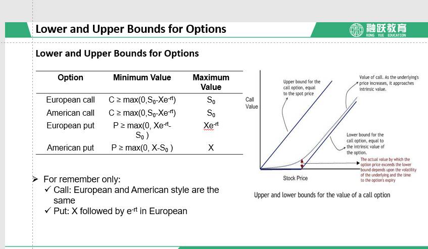 第一个问题,对于有分红的期权,FRM课程没做具体的阐述,记住没有分红的期权上下限和put-call parity等式和不等式就好了。 第二个问题,公式中的FQt是报价,Ft是不含百分号的利率啊,报价上升,利率下降,合约赚钱。视频最下面一行写的是future quote up move.
