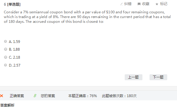 同学你好,就是用PMT(3.5)*90/180=1.75,接近B选项。