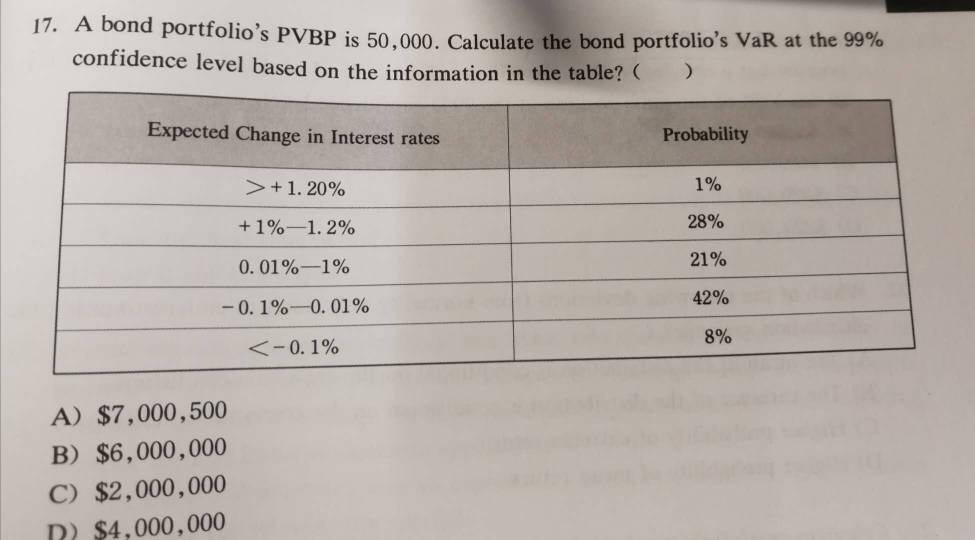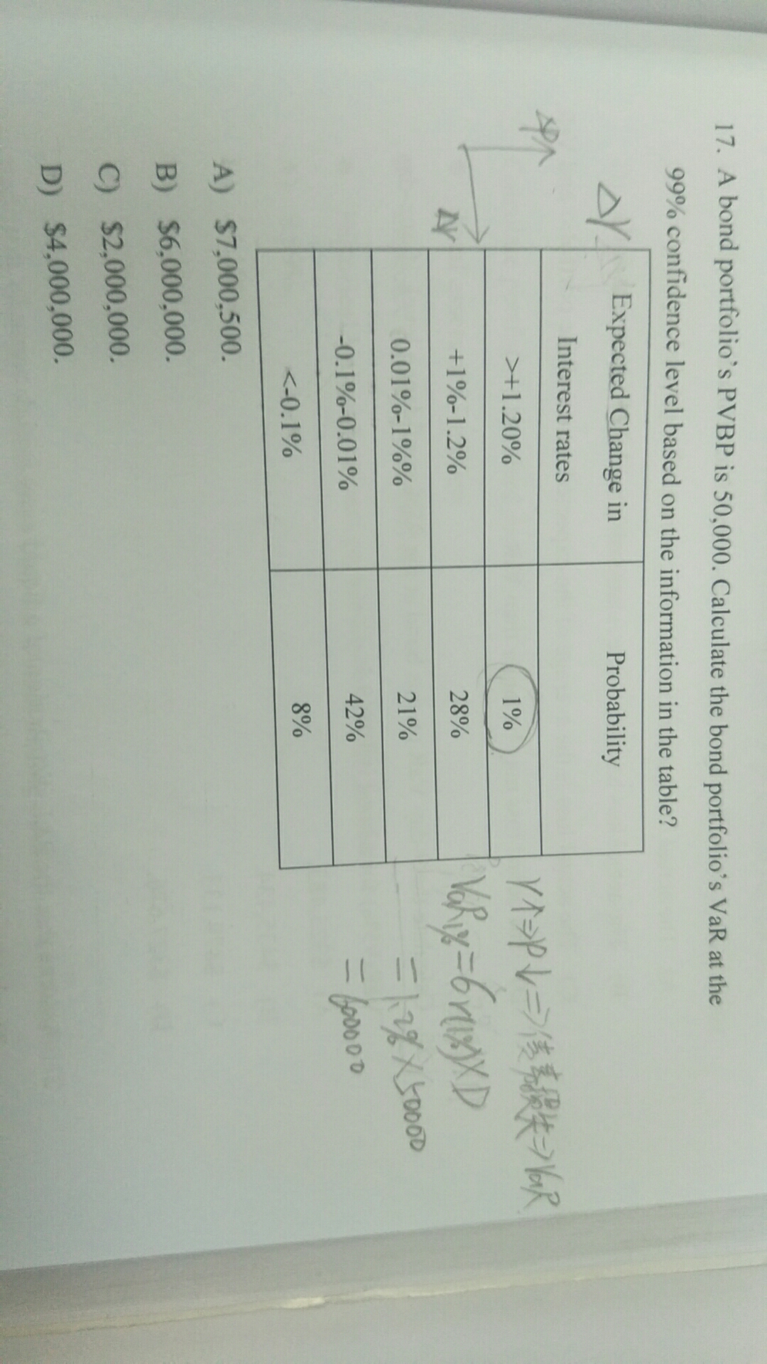 同学你好,因为利率与债券组合价值的VAR成反比,所以利率大于1.2%对应的债券价值就是损失大于某一显著度水平的数值,参考图片理解。