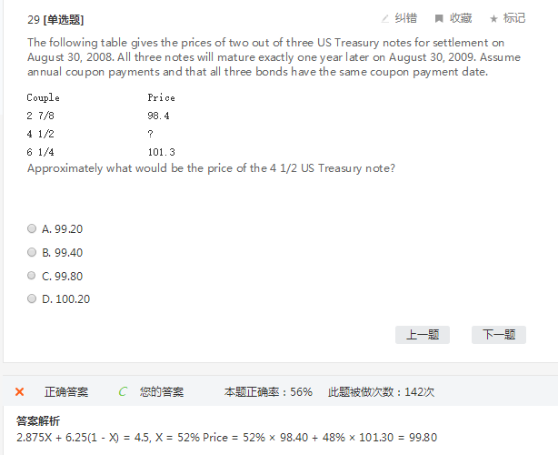 同学你好,这道题是让用第一个和第三个债券去按照现金流匹配原则去组合第二个债券,因为都是一年期,票息都是年付,所以假设第一个债券的权重为X,那么第二个债券的权重就是1-X。