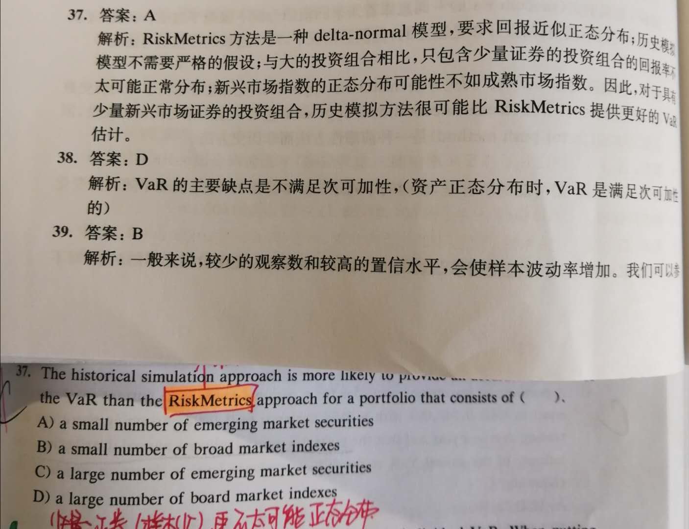 练习册37题给的解析说Risk Metrics是delta normal,解析错了吗?那37题应该如何用EWMA解释?