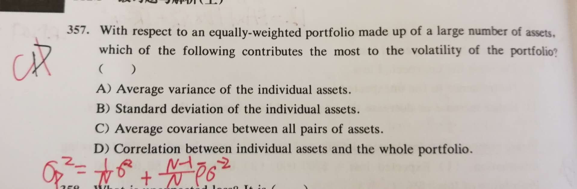 同学你好,红笔的公式不用掌握,只需要了解随着组合里面资产的增多,资产间的相关性会直接影响组合的波动率,在多个资产对里面表现出来就是协方差矩阵,