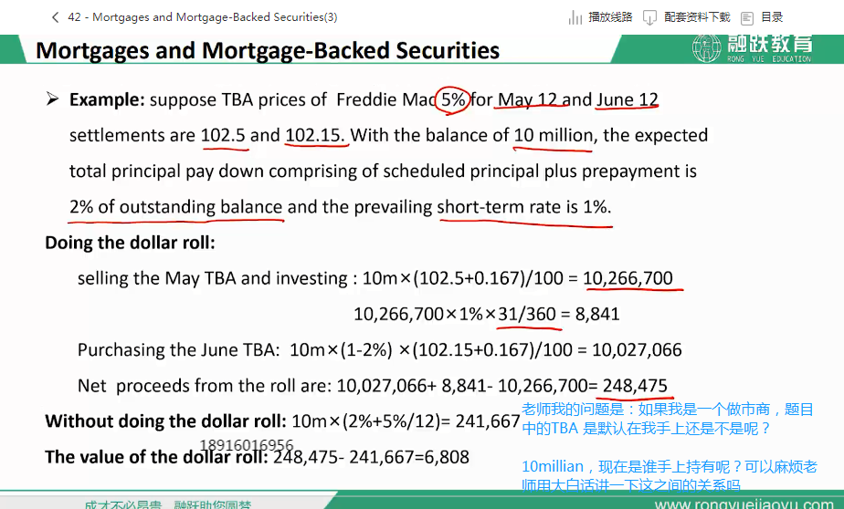 那个10M就是TBA,在没卖之前是在做市场手上,卖了就在其他对手方手上了,你可以把TBA当做你的首饰,你先在市场预期价格未来会下降时抵给当铺换成钱,让后拿这个钱去做短期无风险投资,然后在未来市场首饰价格下降时再用这笔钱买回来(此时的首饰可能不是原来你那个而是同类的)。