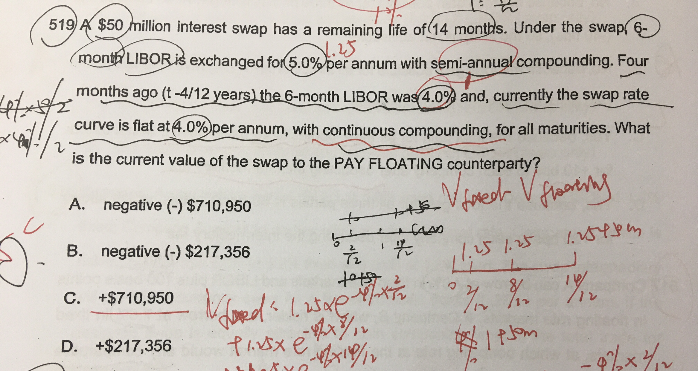 他说swap rate curve is flat at 4% 这句不是说我的折现率都是4%吗