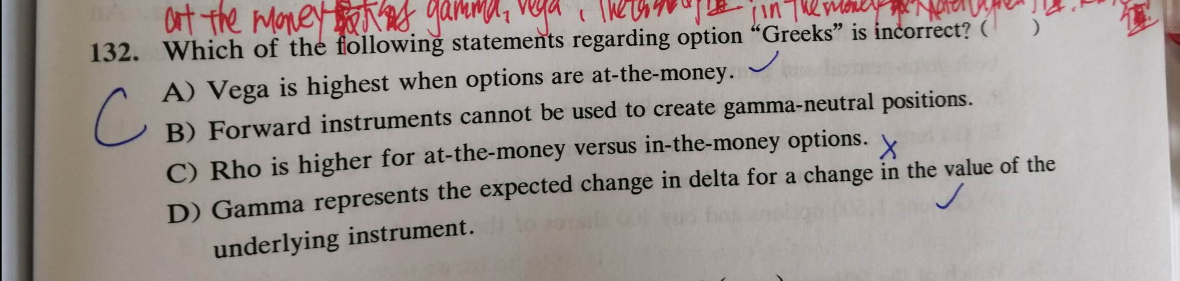 同学你好,因为远期he期货的gamma值均为0(定性记忆即可,不需要掌握推导),所以保持gamma中性只能通过期权头寸的调整来获得。