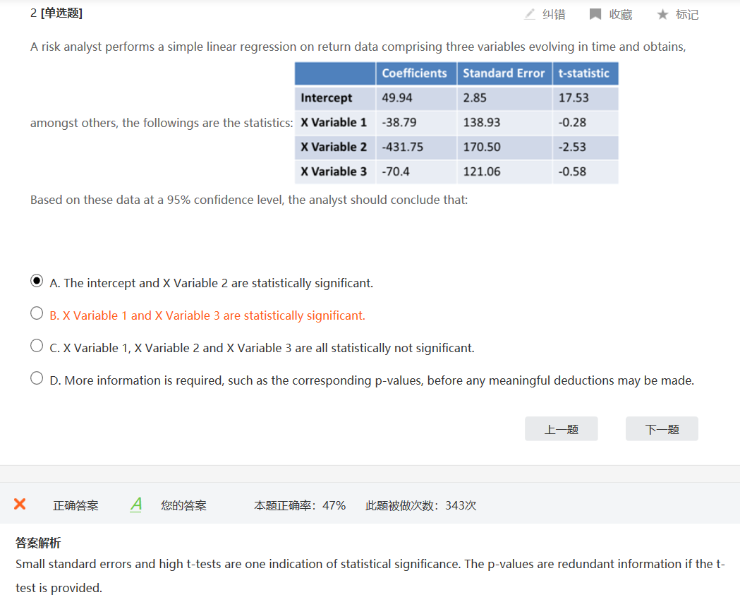 同学你好,对于回归系数的显著度检验的判断标注是看t统计量和置信度水平对应的关键值就可以了。变量2t统计量等于2.53大于置信度为95%对应的关键值1.96,所以变量2的系数是显著的。