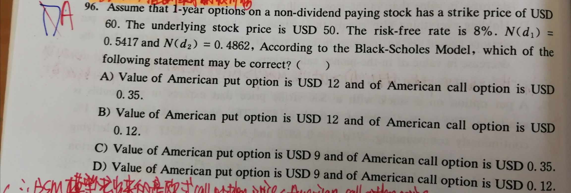 同学你好,这道题选项中说的是美式期权,没有欧式期权。