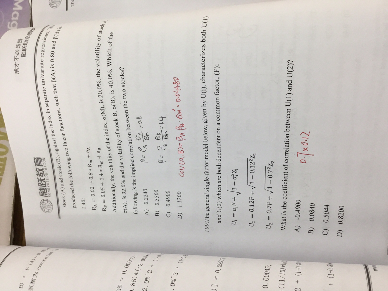 同学你好,第198题题目有问题,答案是错的,建议跳过。至于199题考察的是单因子模型,计算方法就是解析中的,是一个定性结论,推导过程不要求掌握。
