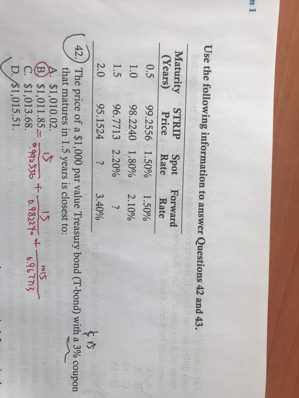 同学你好,是可以直接用即期利率算的哈,比如,1/(1+1.5%/2)=d(0.5)=0.992556;1/(1+1.8%/2)^2=d(1)=0.982240;这样的话就跟用折现因子直接算一样了。