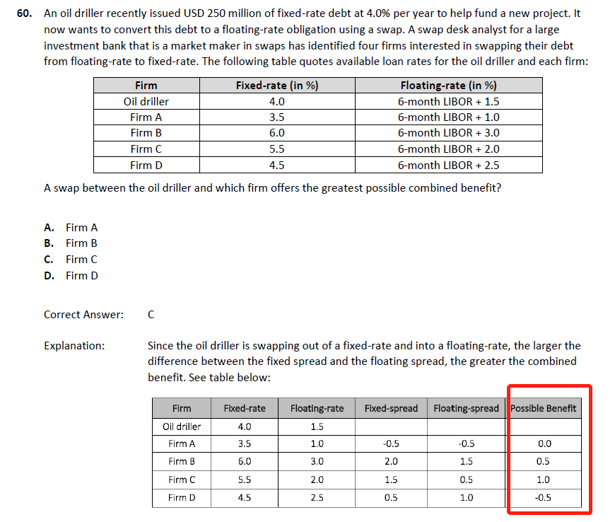 同学你好,该知识点不考具体双方的利率成本,因为最后互换的方案跟双方最终的商量博弈有关,但可以计算出双方通过互换总共能节省多少成本(与不互换相比),计算方法就是解析中的,固定端作差,浮动端作差,然后两者再作差就是最终一共省下的成本。