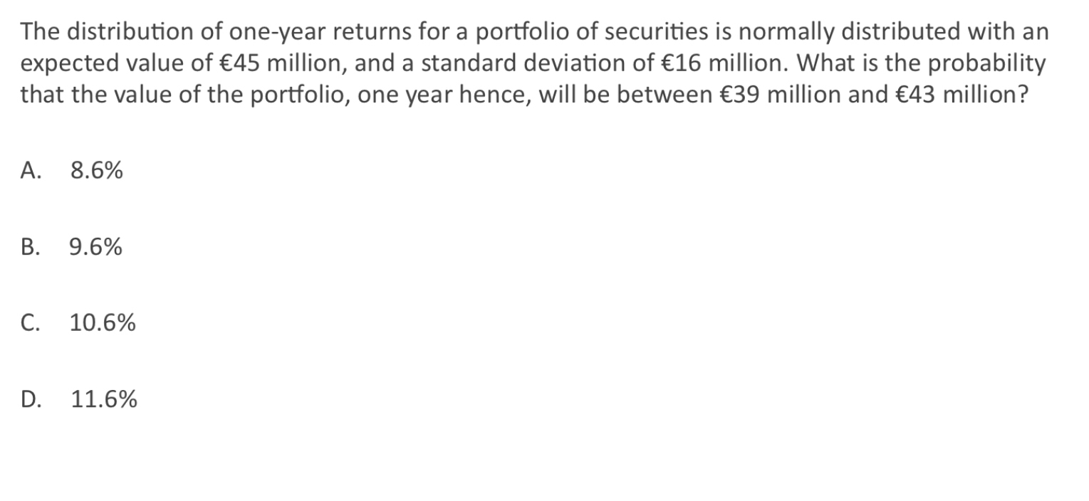 同学你好,这个是需要查表的,查出N(0.125)即和N(0.375),然后计算1-N(0.125)和1-N(0.375),最终最终的结果是【1-N(0.125)】-【1-N(0.375)】