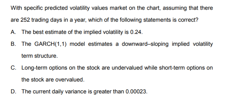 老师,在这个图看来,GARCH是下降水平对吧?那B选项的讲的是一般的情况对吗?还有C选项的话,长期的期权会高估波动率,这个是从图中得到的还是已有的结论推断出来的?