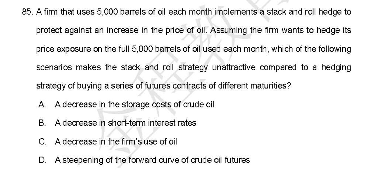 同学,当原油期货的远期利率曲线是upward时,用stack and roll的成本将会增加