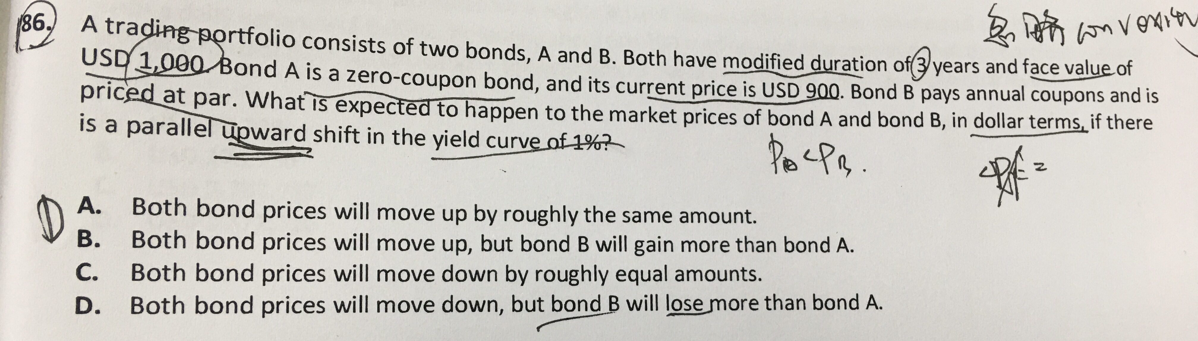 对的同学,没有考虑convexity,题干中说考虑的是平行变动