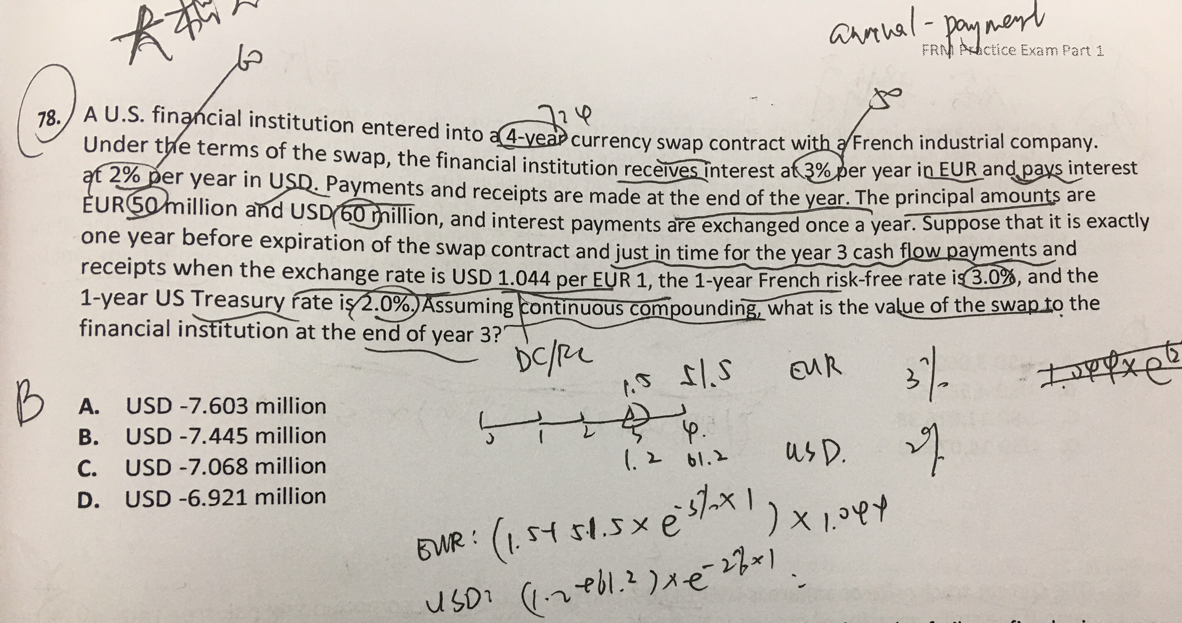 同学,你算出来的-7.811就是解析中第五步算出来的year 4的PV,题干要的是第三年末的价值,所以按解析中方法更简便了