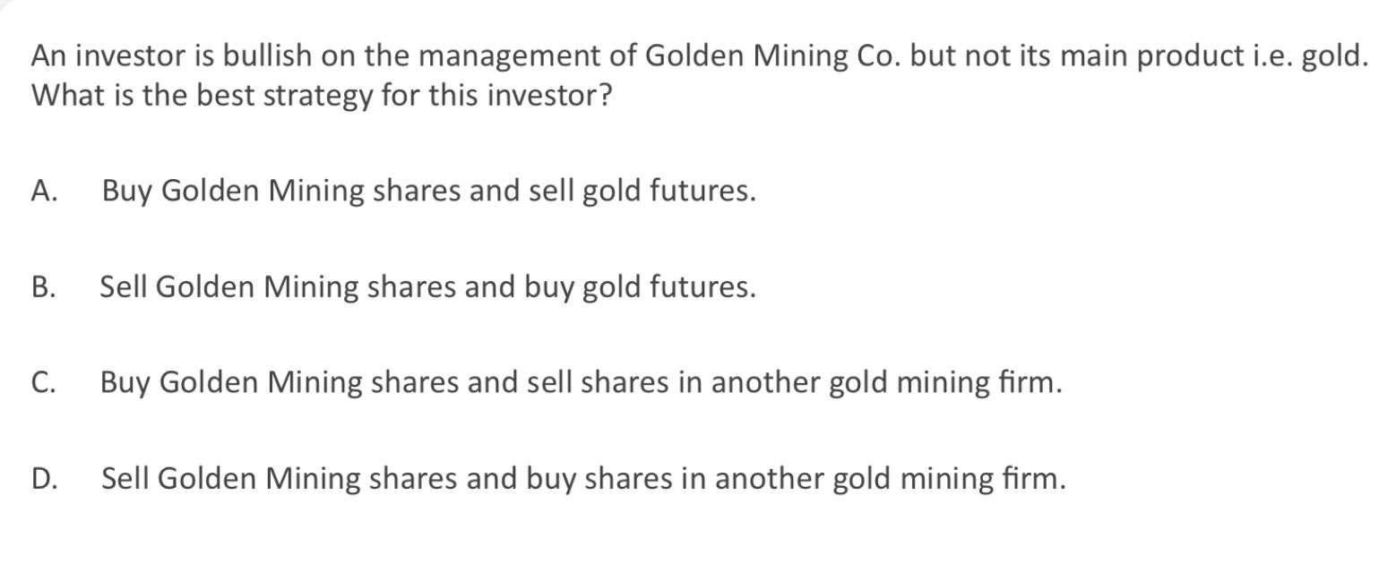 同学你好,根据题干的意思,该投资者仅仅是看好这个矿业公司的管理层能力而并非其产品,所以要买入其公司的股票(管理层能力越好,公司股价上涨的概率越大),卖出该产品(看衰某个产品就要做空其期货)。