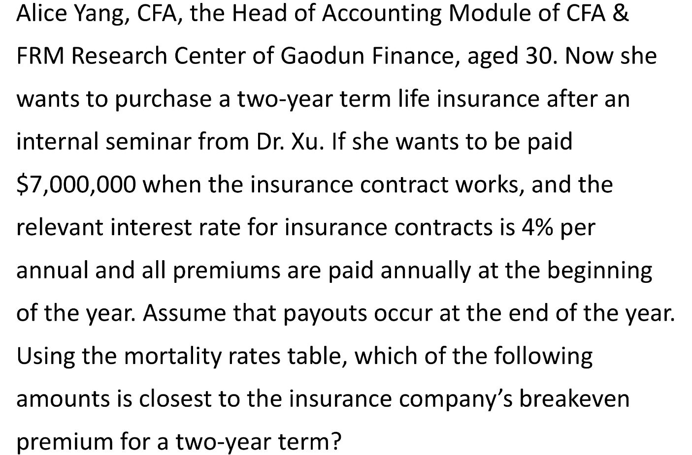 同学,一般题目中赔付是年中支付,但这个题目中说payout occur at the end of the year