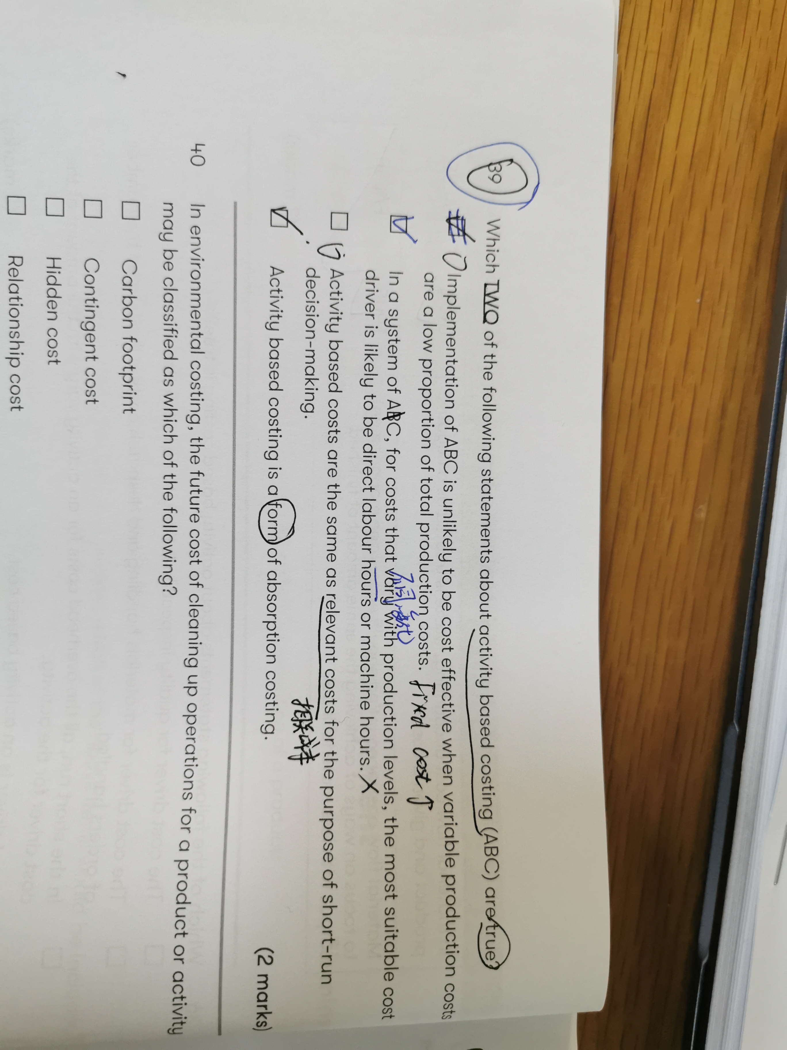 1:ABC用于Fixed cost 占比比较高的情况时,会更加的cost effective。2:因为产量不同可能是由与生产相关的间接费用的成本动因是直接工时或机器工时。3:ABC与relevant cost 是不能联系起来的,在做短期决策的时候ABC中的成本,一些在短期内可能是可变的,有些则不一定,比如租金。