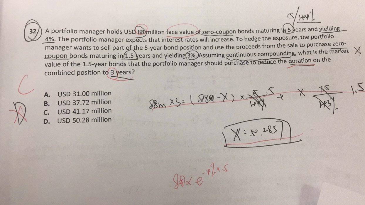 对的同学modified duration是要除以(1+y),这个题目中将修正久期近似于期限了,不严谨哈