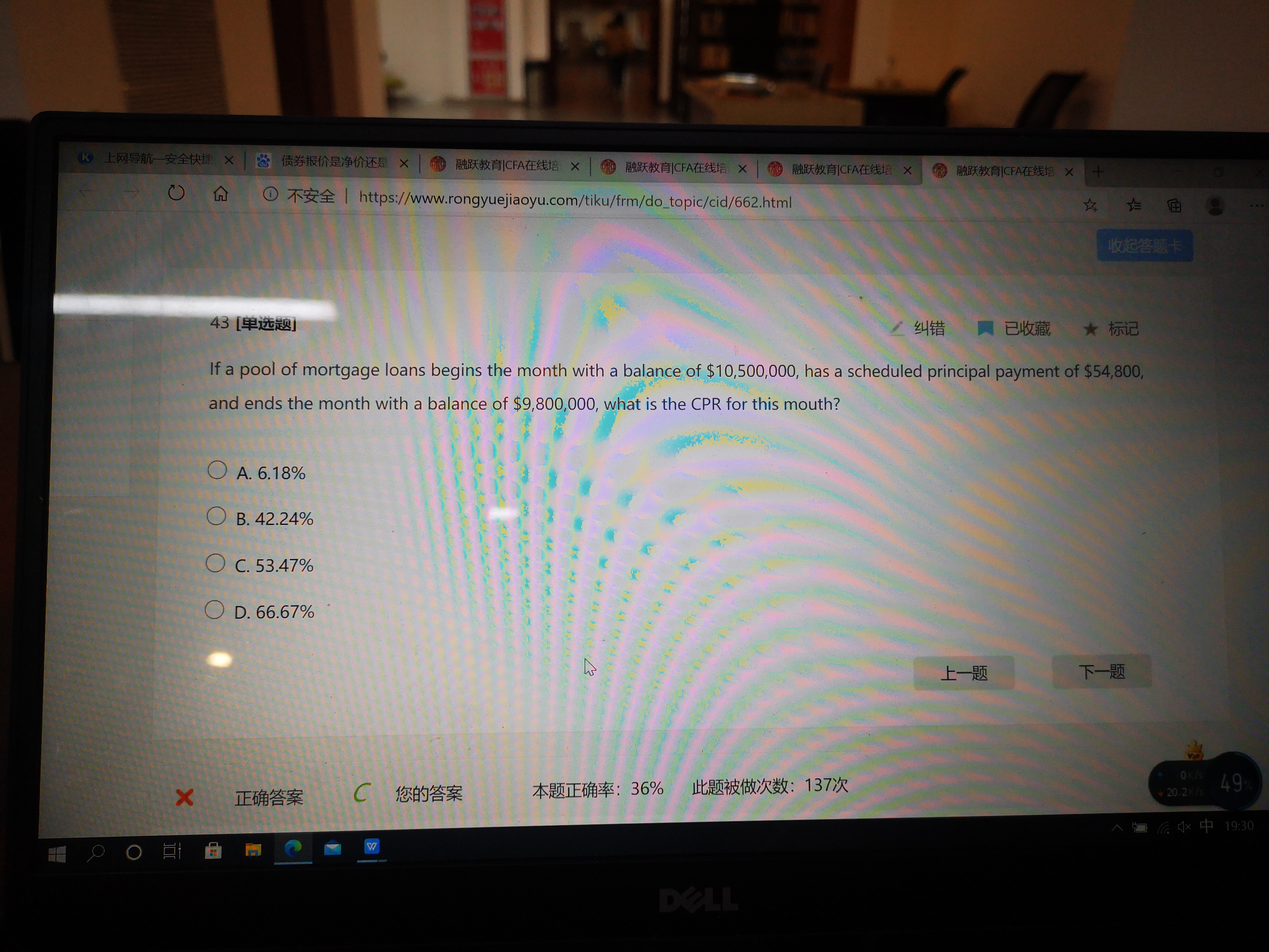 同学,SMM=[(10500000-9800000)-54800]/(10500000-54800)=0.06177,CPR=1-(1-0.06177)^12=53.47%