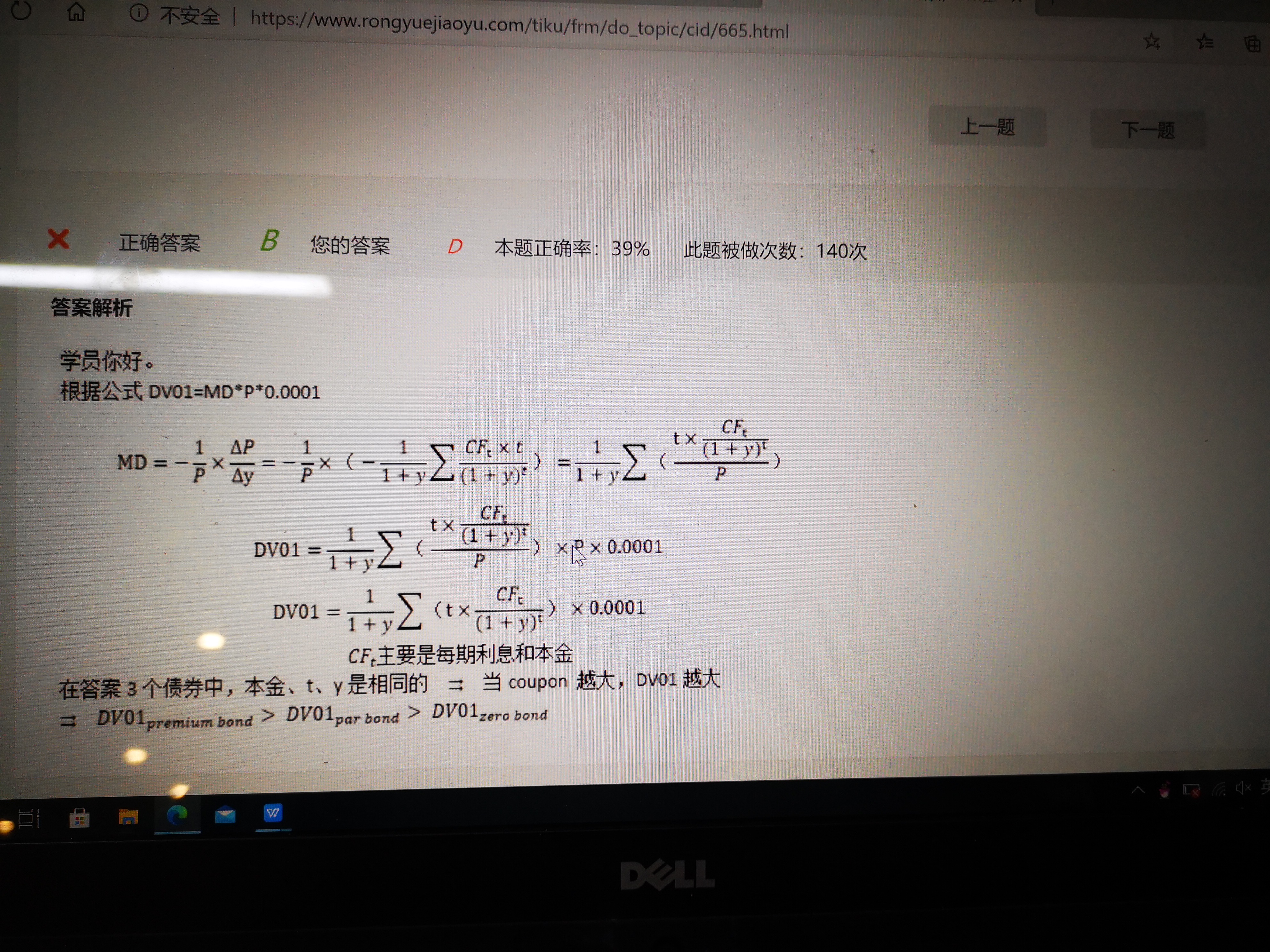 答案是修正久期,修正久期=麦考利久期*1/(1+y)