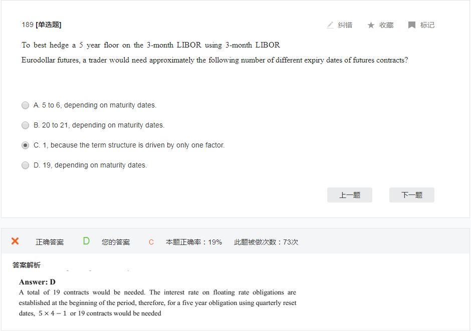 因为浮动利率债券,第一期利率是由上一期确定的,所以需要4*5-1 = 19个 三个月的libor来对冲