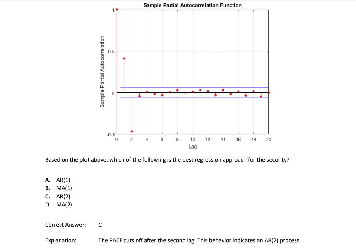 同学你好,这个图虽然滞后两阶PACF都有数值,但是两个数值差不多,并没有呈现衰减的特征,而且后面的数据都是在一定的范围内波动,所以可以用AR模型去模拟预测,而且是AR(2)模型,因为滞后两阶的自变量对因变量影响也较大,这也是实务中比较常见的现象。