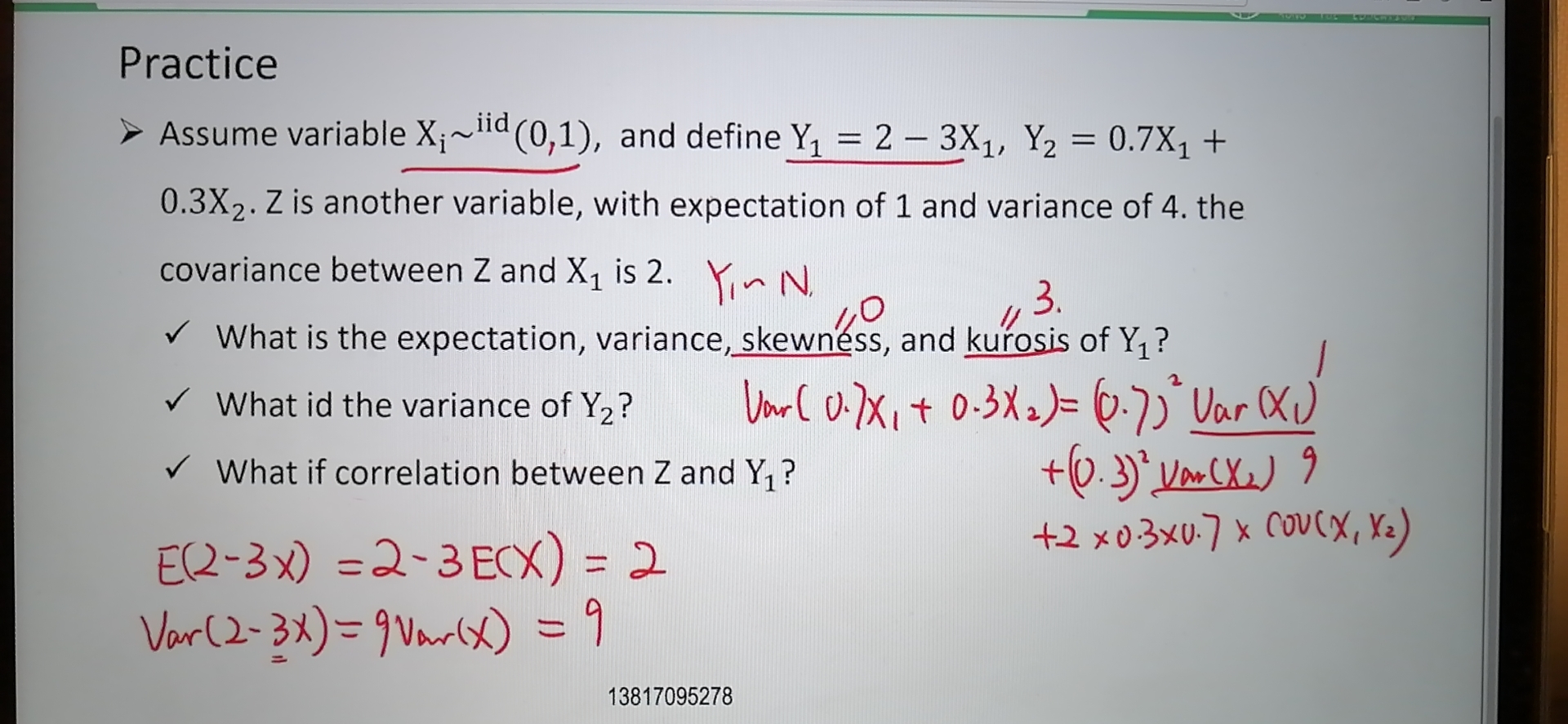 你好,第二小问的var(X2)应该是等于1,老师写错了。