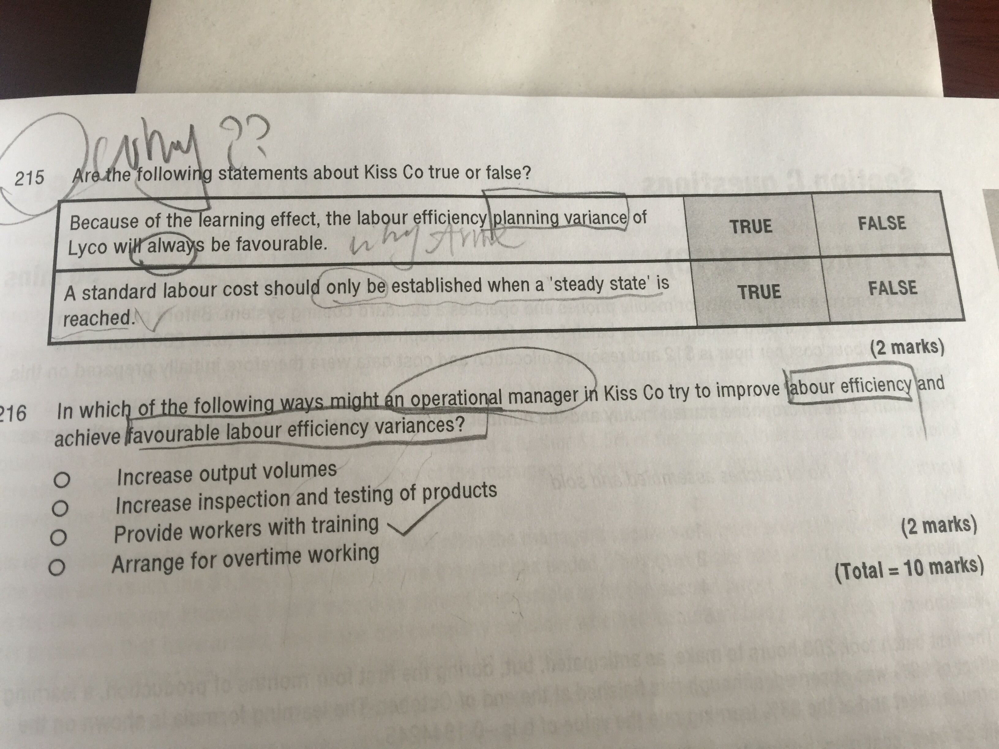 同学,1、由于学习的影响,会不断的降低labour time per unit,劳动效率会提升,labour efficiency planning variance 会一直是F的。2、标准成本的实现前提就是在稳定的状态下。