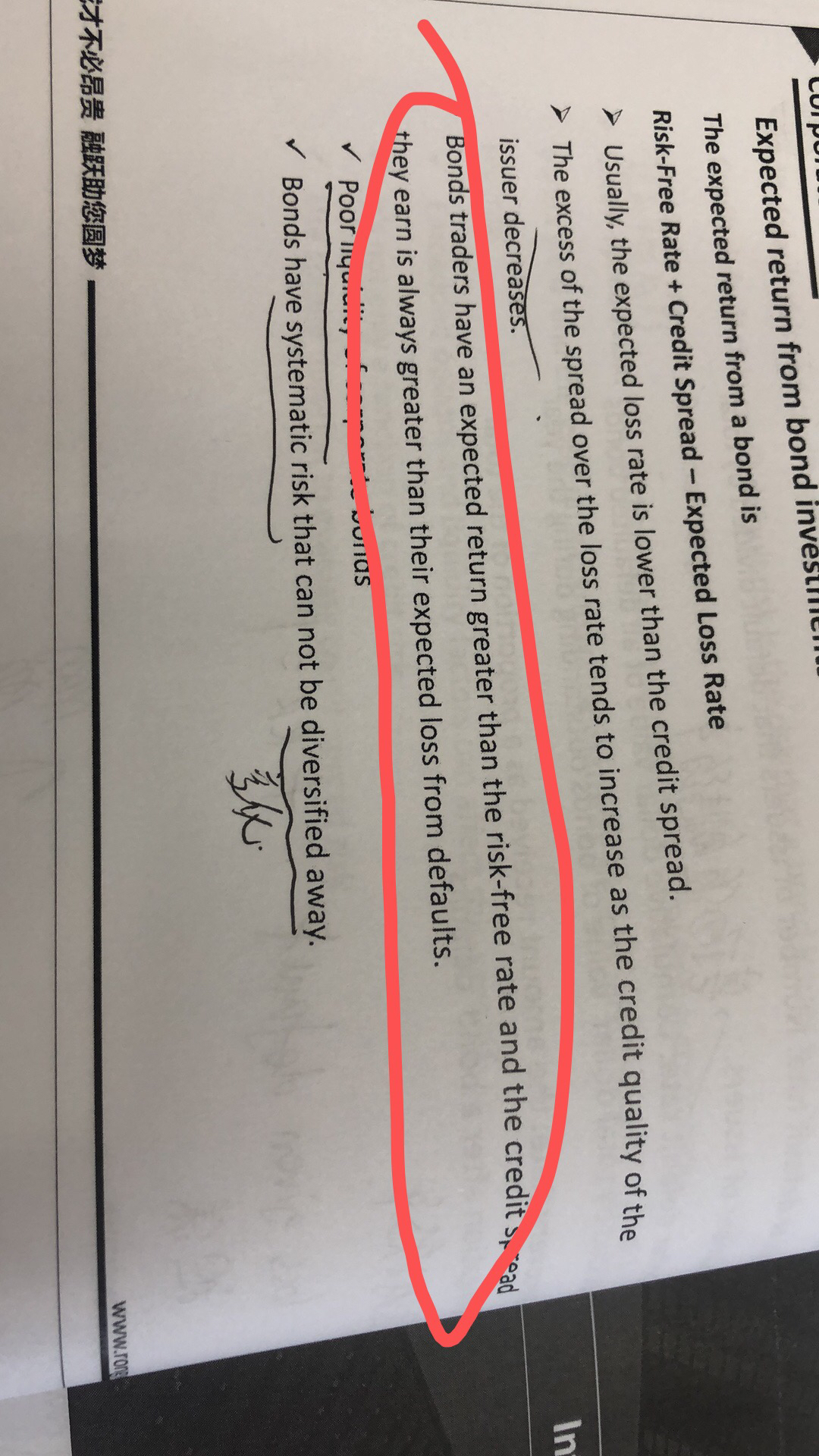 债权的发行人如果信用质量不好,预期损失率就比较高,那么发行时投资者所需要的预期收益率会更高!