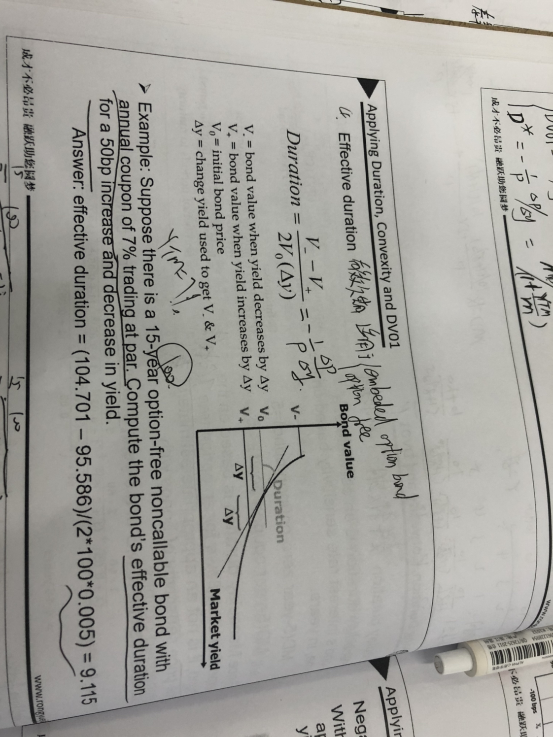 15n,7.5%i,7PMT,100FV ,计算结果为95.586;15n,6.5%i,7PMT,100FV ,计算结果为104.701;