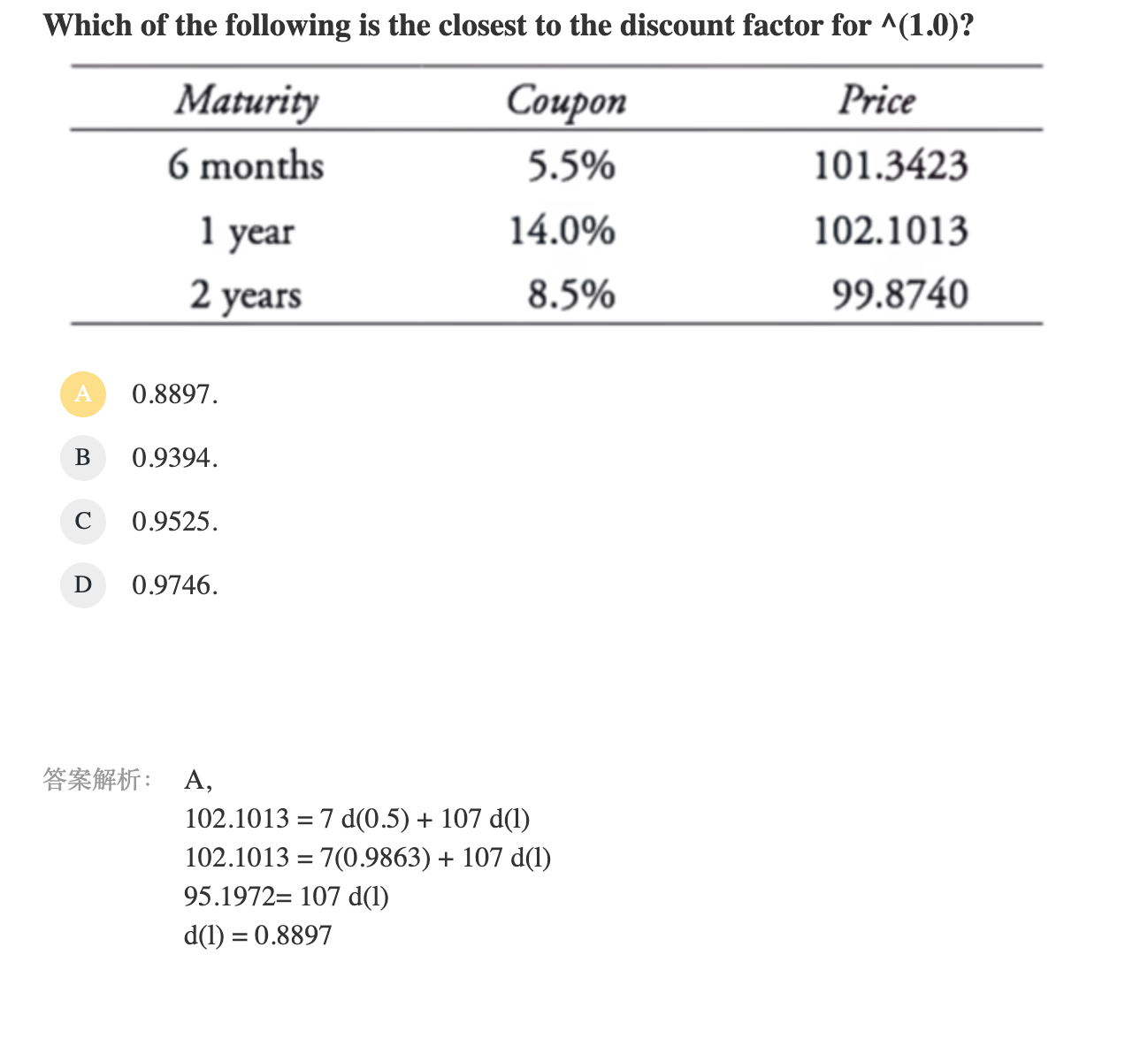 面值100.coupon为5.5%,半年的利息为2.75,利息和面值合计为102.75