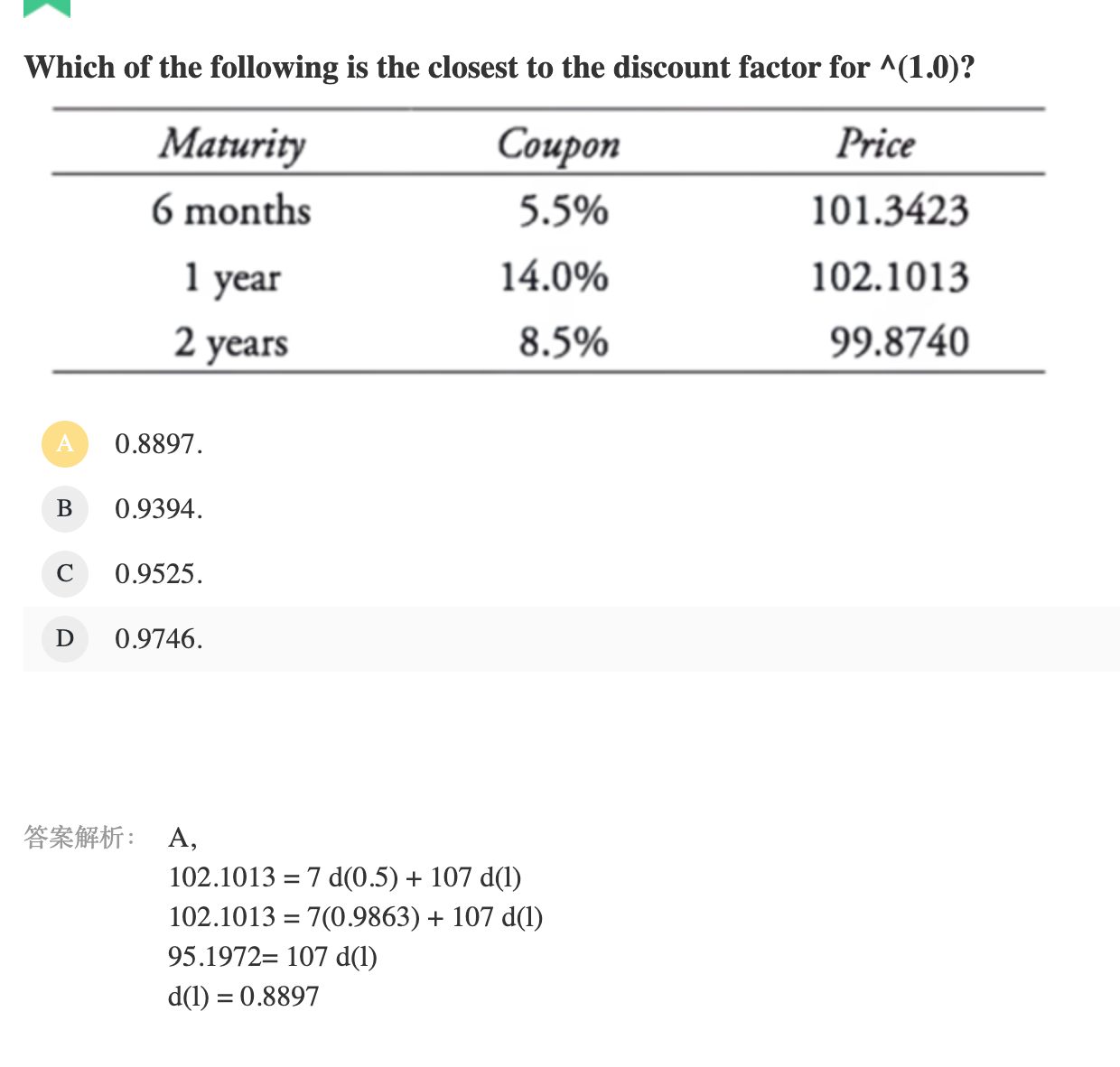 这是另外一个债券了,2.75是6个月债权的利息,这里边计算的是1年期限的债券,息票率为每年14%