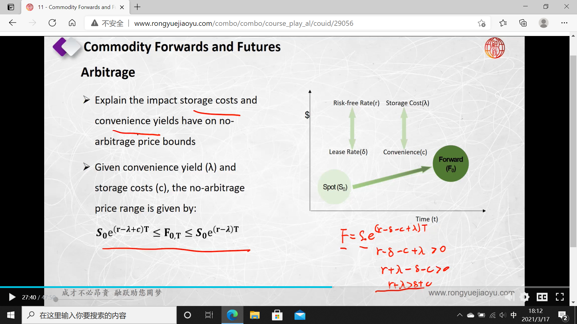 同学,根据减去便宜收益率加上成本的运算得出是大于等于哈,因为在右边图像和下面那段话中对于便宜收益率和成本的表示字母不同,所以有偏差了,掌握核心思想即可哈
