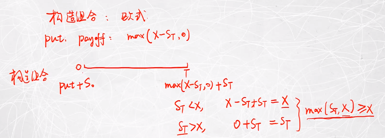 同学,这里是用P+S构造出C+Ke^(-rt)的组合,对于看涨期权来说,执行价格X通常小于市场价格S,所以最大值一定大于X