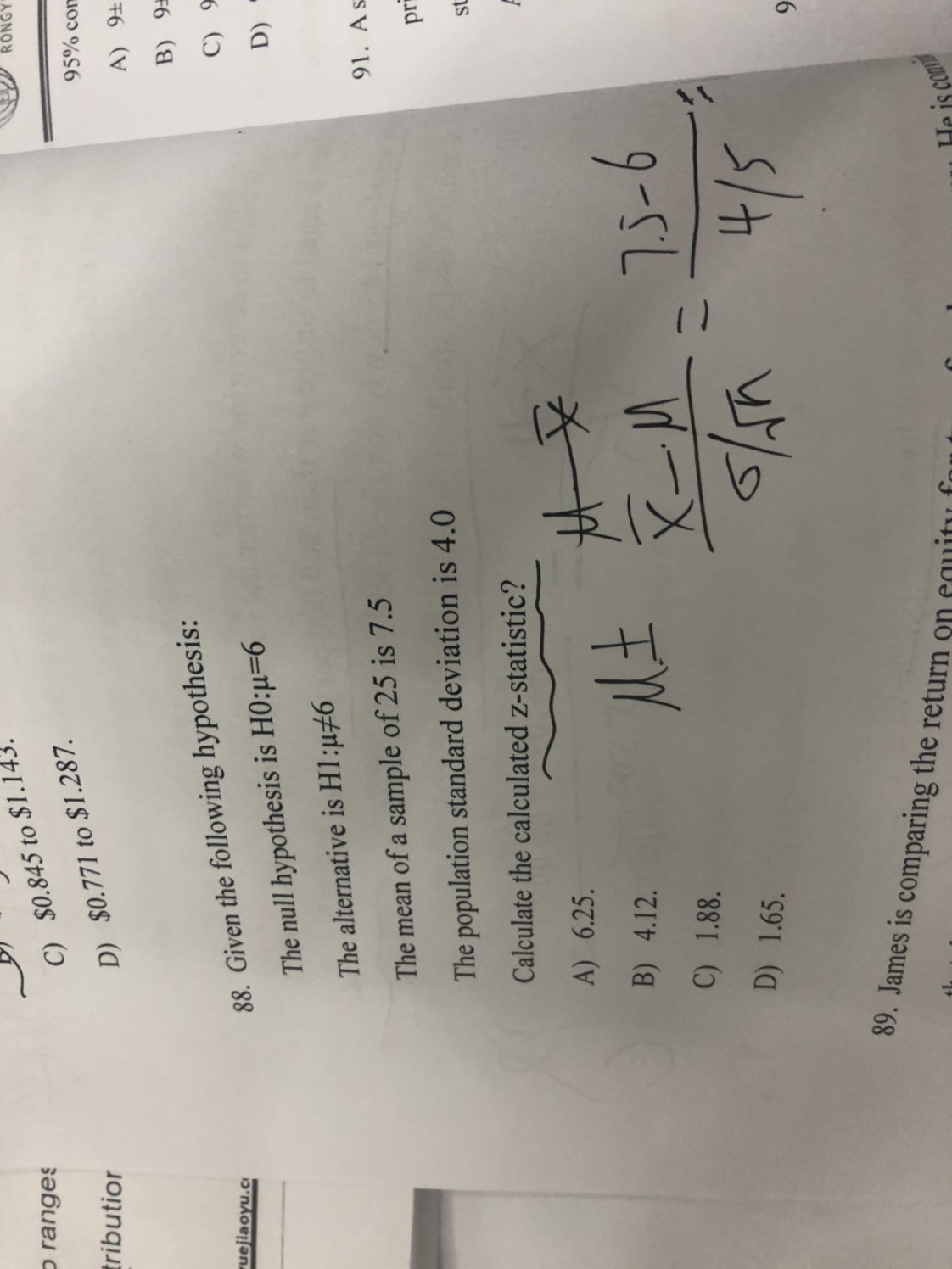 76题的样本量是25,小于30,就是小样本,而且总体的方差未知,所以要用t分布。88题,总体的方差已经明确告诉你了,所以要用的是Z,Z分布是不需要考虑自由度的问题的。