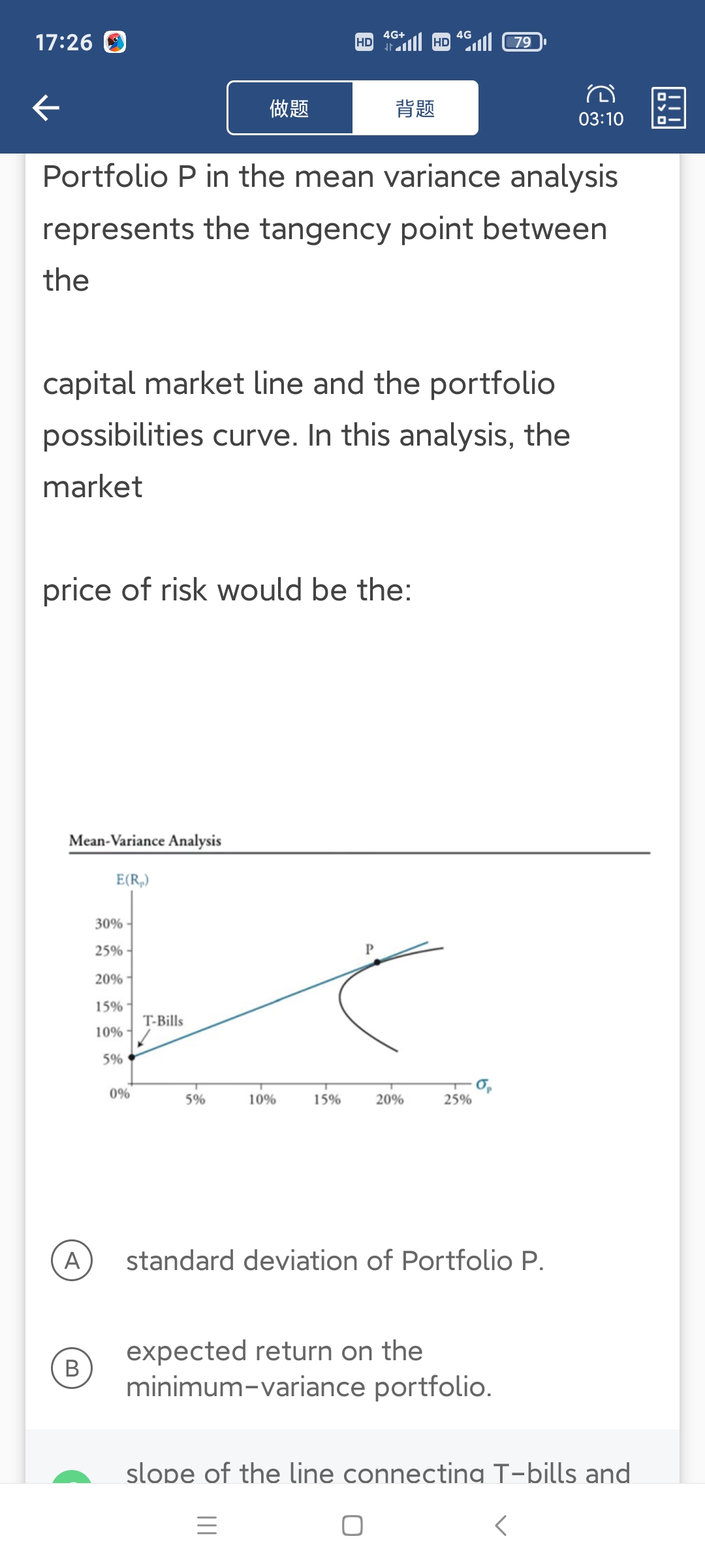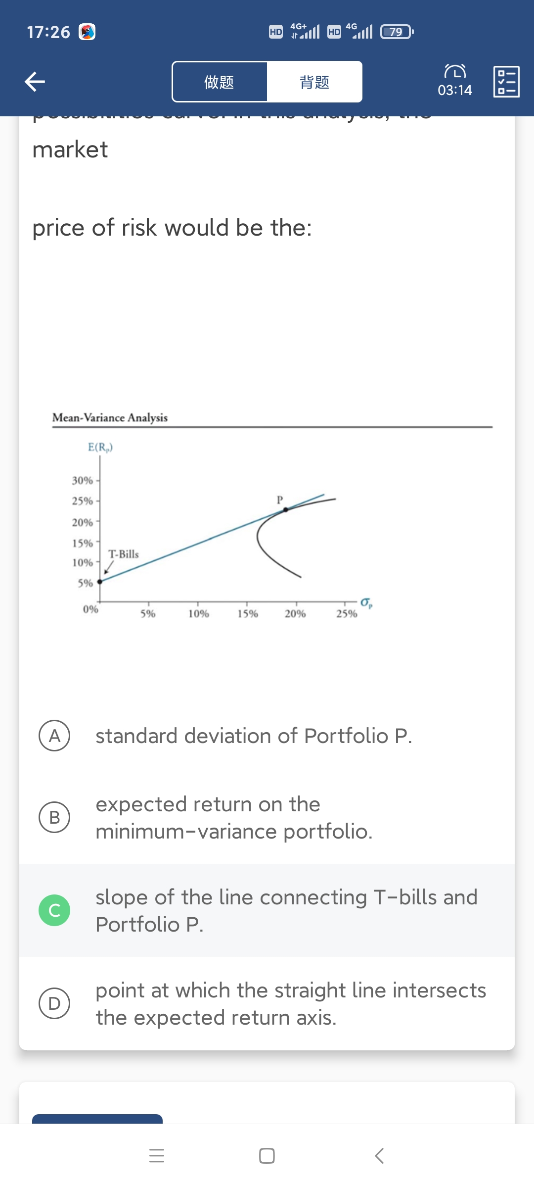 同学你好,这道题问的是风险的市场价格在图形上的哪个位置,很显然就是SML直线的斜率,代表了每一点风险所代表的收益情况。