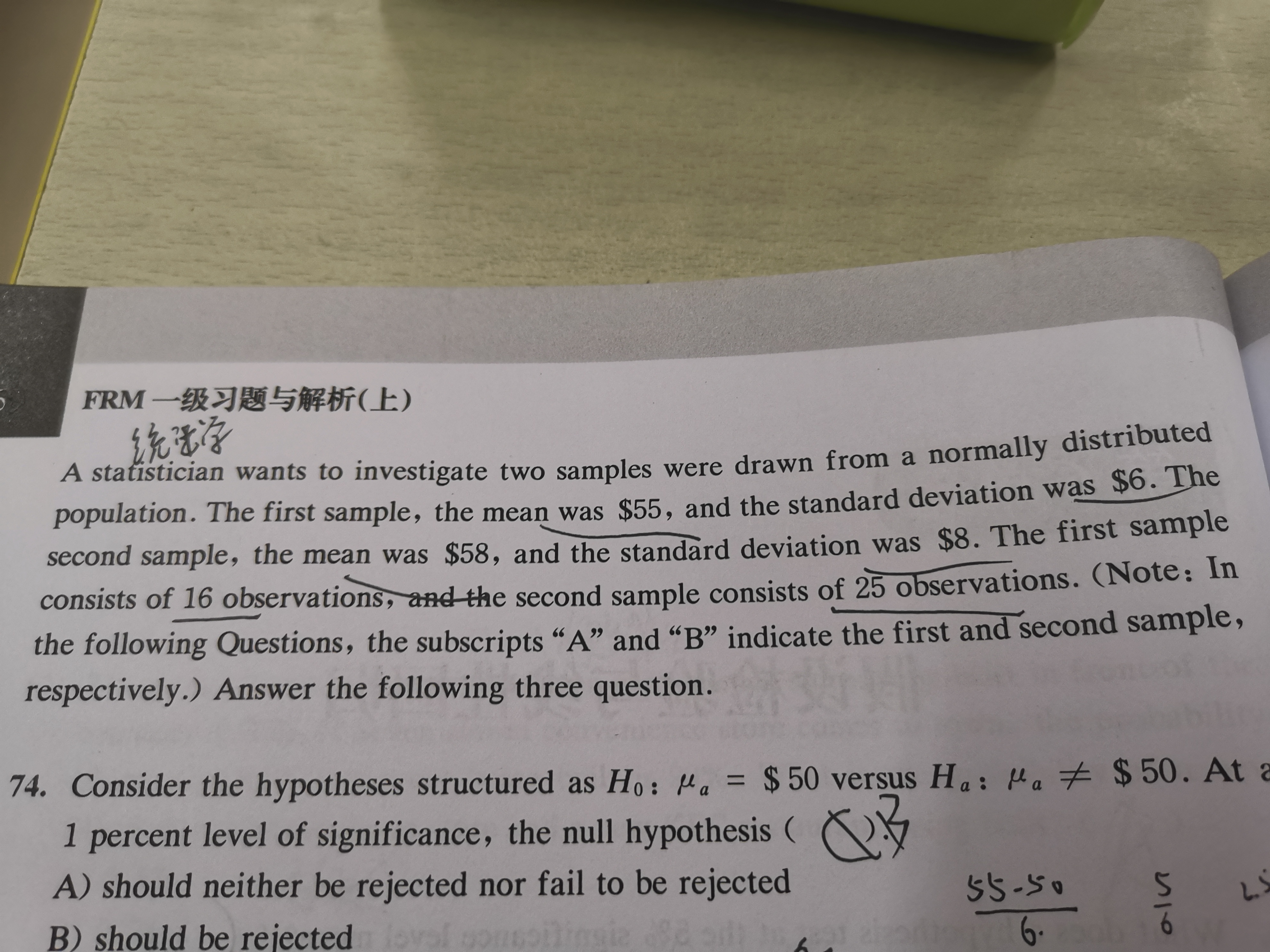 没明白你的意思,卡方统计量应该是等于(n-1)24/25. 这个25就是括号中5的平方。